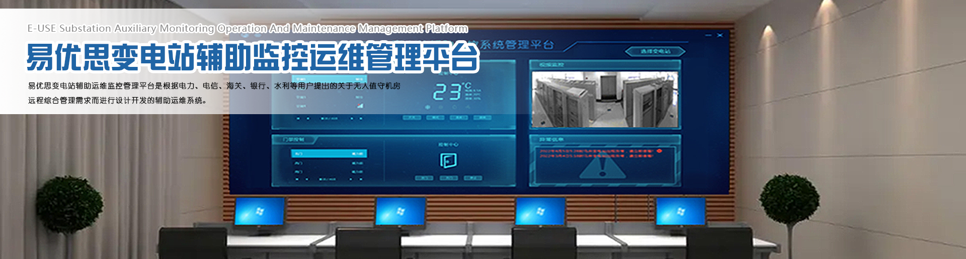 易优思变电站辅助运维监控管理平台由门禁系统、监控系统、空调控制系统、浸水检测系统、风力检测系统、室内环境检测系统、数据展示系统组成。
